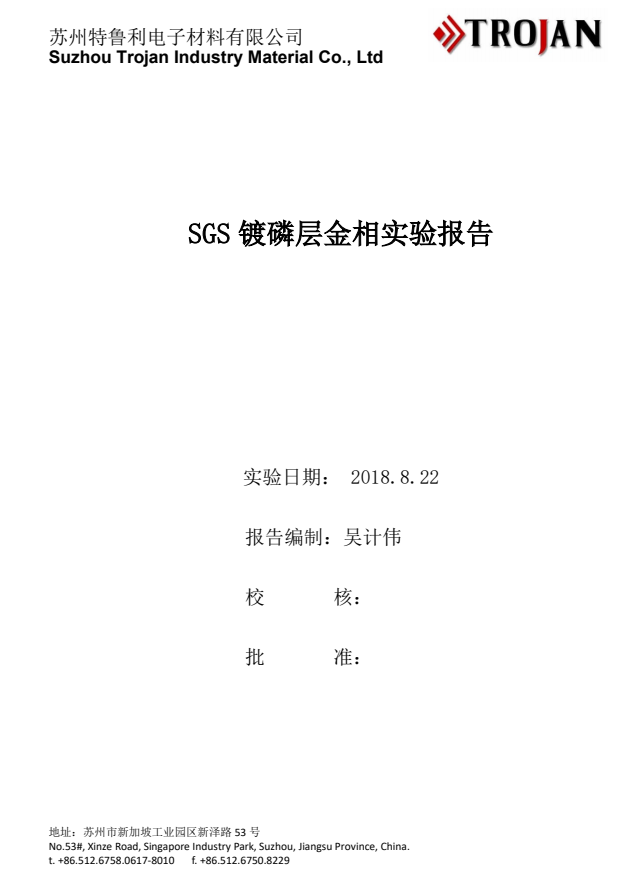 รายงานการวิเคราะห์การเคลือบโลหะด้วยฟอสฟอรัส SGS