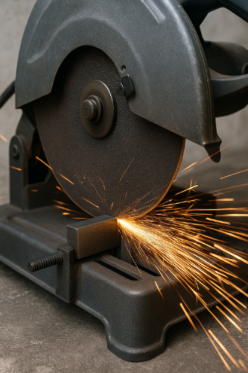 - มอเตอร์ – ขับเคลื่อนล้อตัดที่ RPM สูง (โดยทั่วไปคือ 3,000–5,000 RPM สำหรับการตัดโลหะ)
