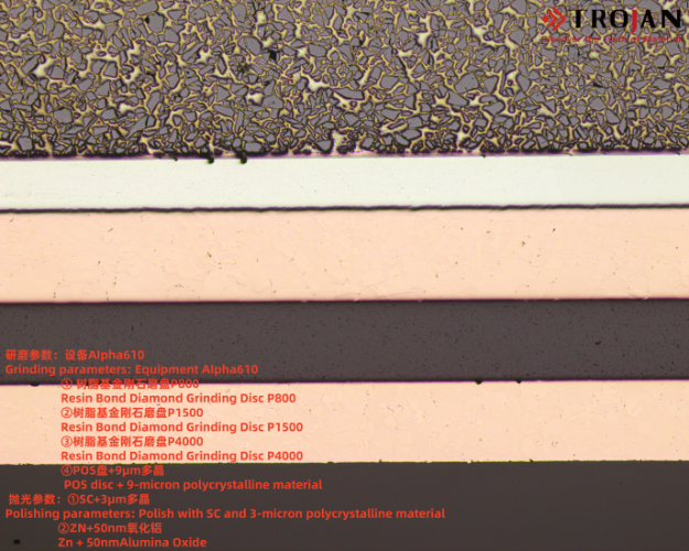 ต่อไปนี้เป็นพารามิเตอร์การเตรียมการและการวิเคราะห์เอฟเฟกต์ด้วยกล้องจุลทรรศน์ตัวอย่างวัสดุคอมโพสิตชิปยานยนต์ตัวอย่าง: